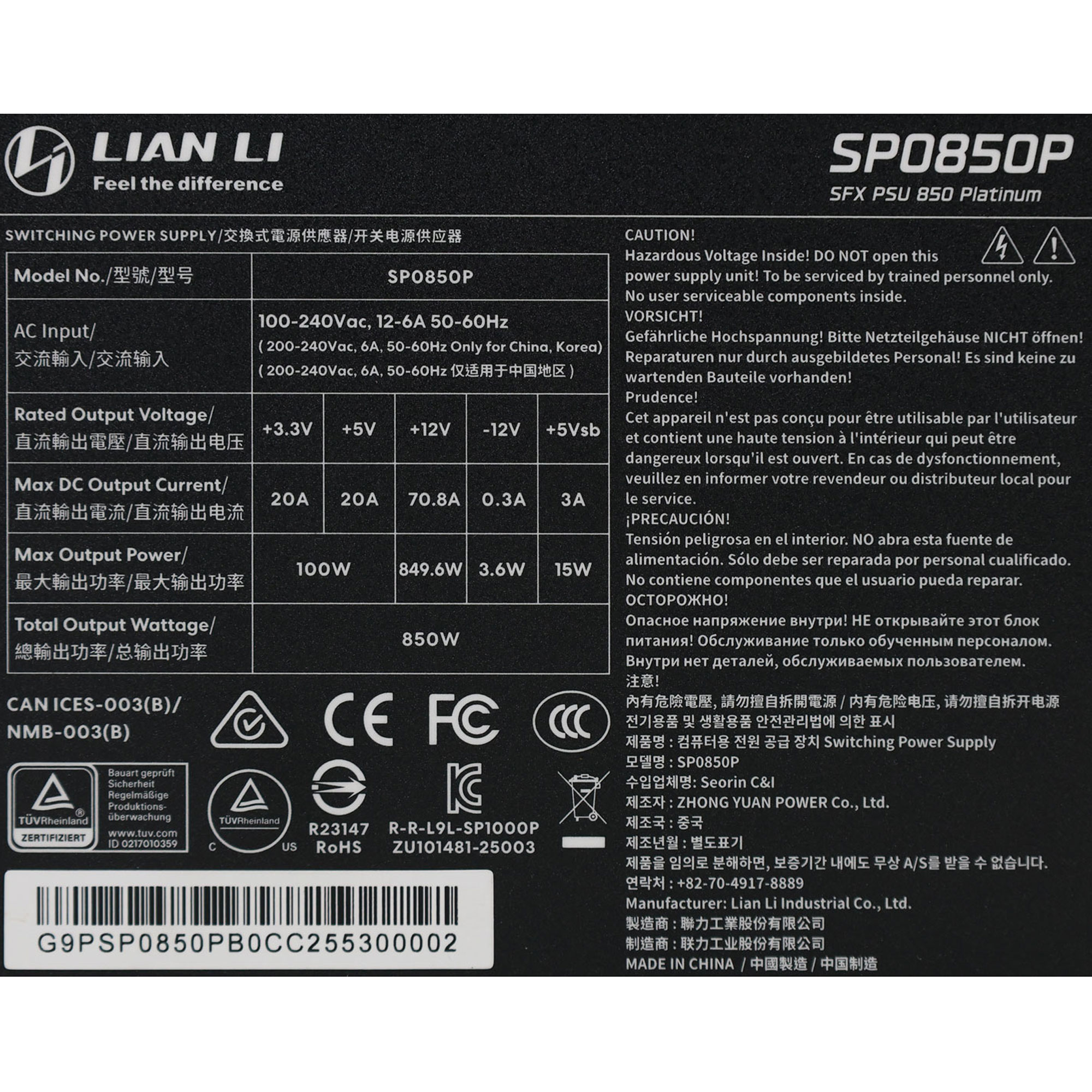 Serial NumberG9PSP0850PB0CC255300001