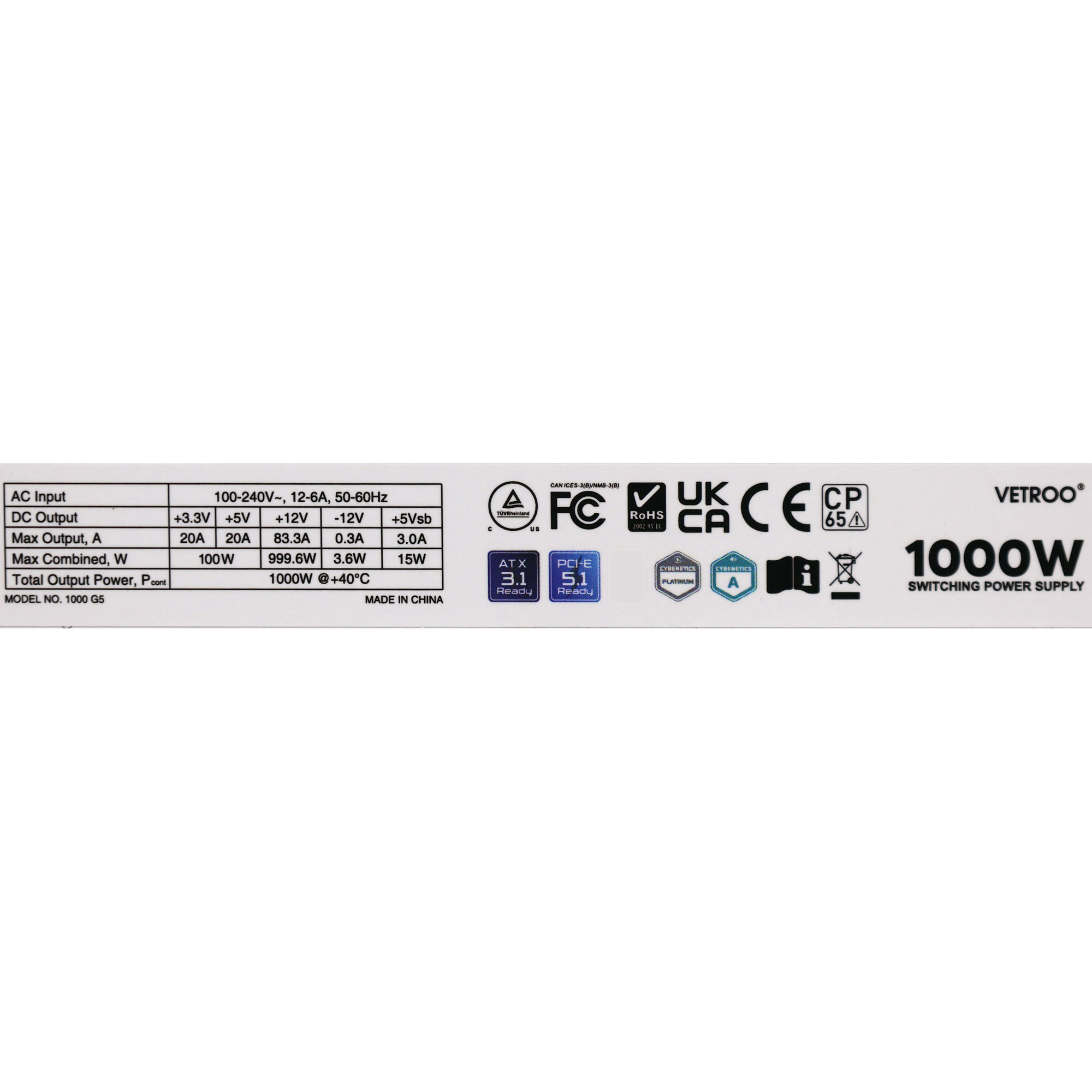| 6+2 pin PCIe (500mm) | 2 | 2 | 18AWG | Tinned Copper |