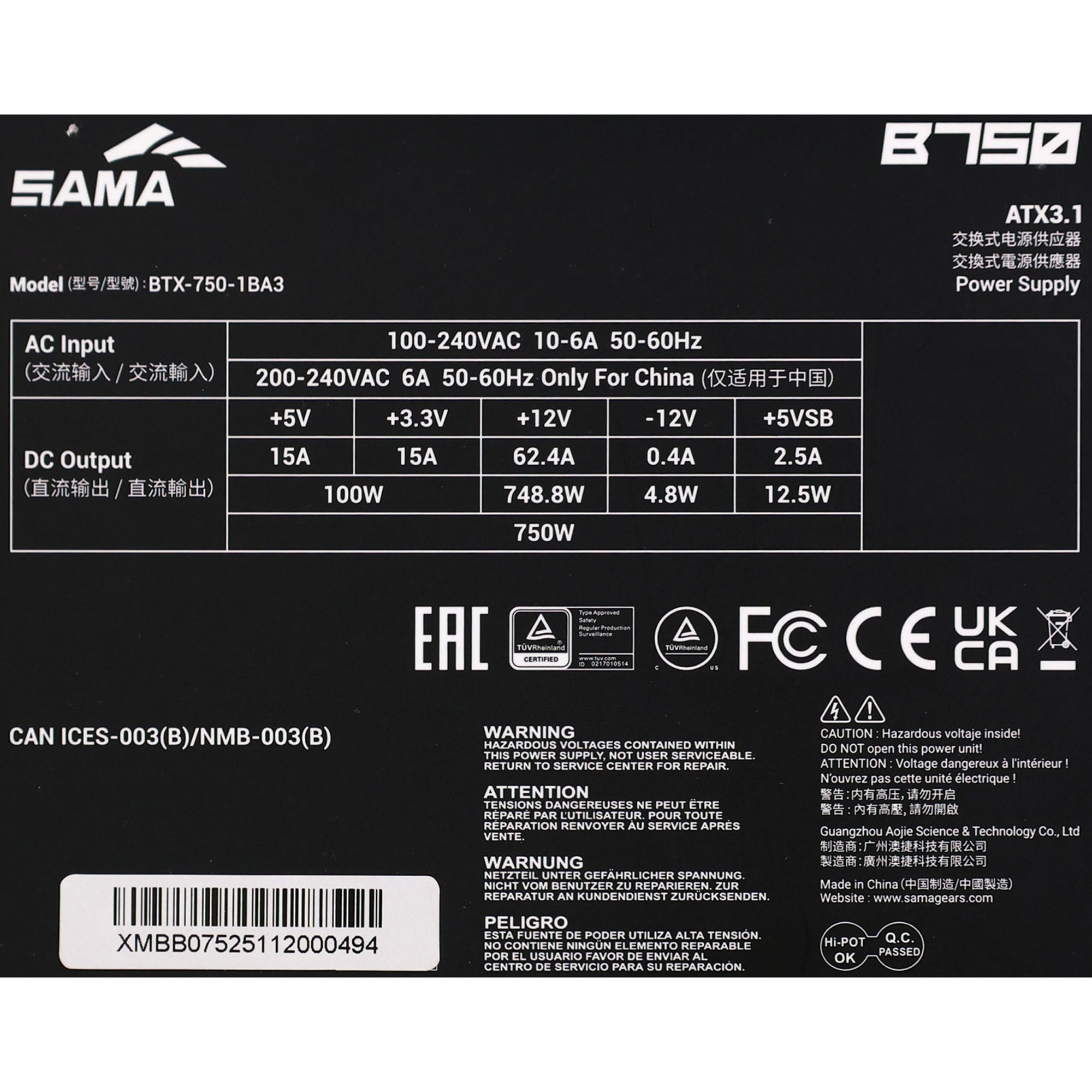 | Serial Number | XMBB07525112000494 |