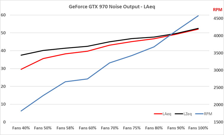 NVIDIA GeForce GTX 970 Noise Output from 40% to 100% Fan Speed