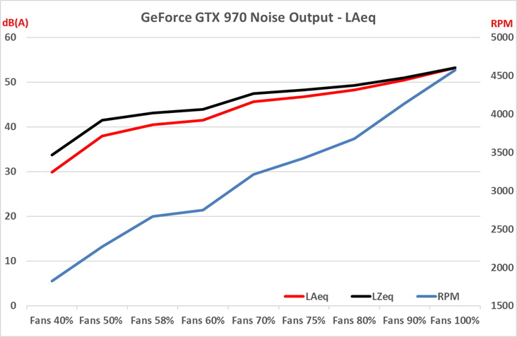 NVIDIA GeForce GTX 970 Noise Output from 40% to 100% Fan Speed