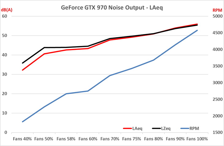 NVIDIA GeForce GTX 970 Noise Output from 40% to 100% Fan Speed