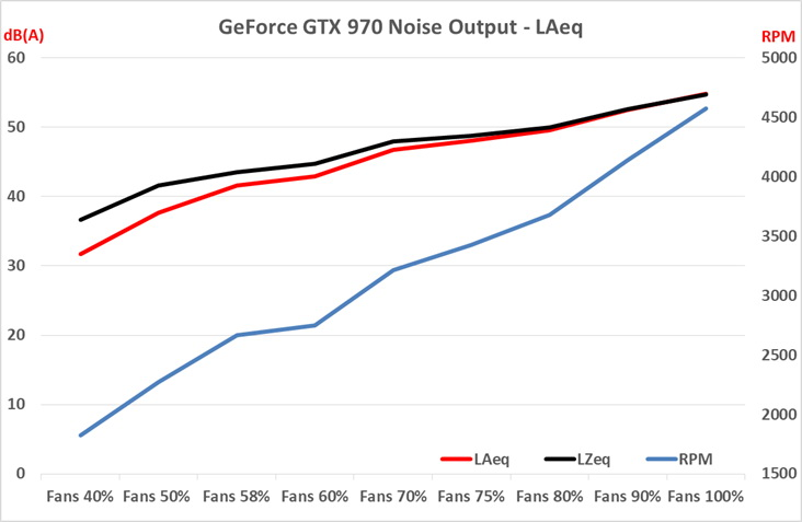 NVIDIA GeForce GTX 970 Noise Output from 40% to 100% Fan Speed