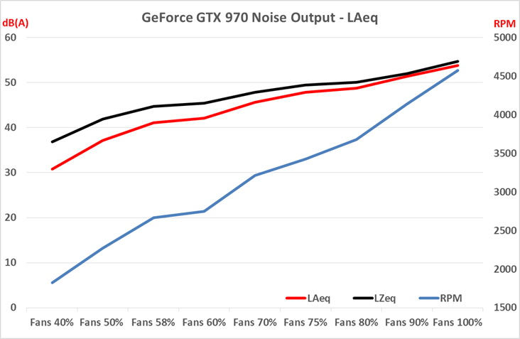 NVIDIA GeForce GTX 970 Noise Output from 40% to 100% Fan Speed
