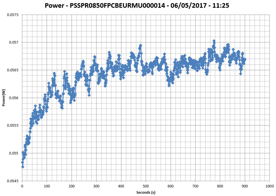 This graph is generated by the PPA Standby Power Analysis software which takes full control of the power analyzer during the whole procedure. This application features all of the EN50564 & IEC62301 test limits for standby power software testing.