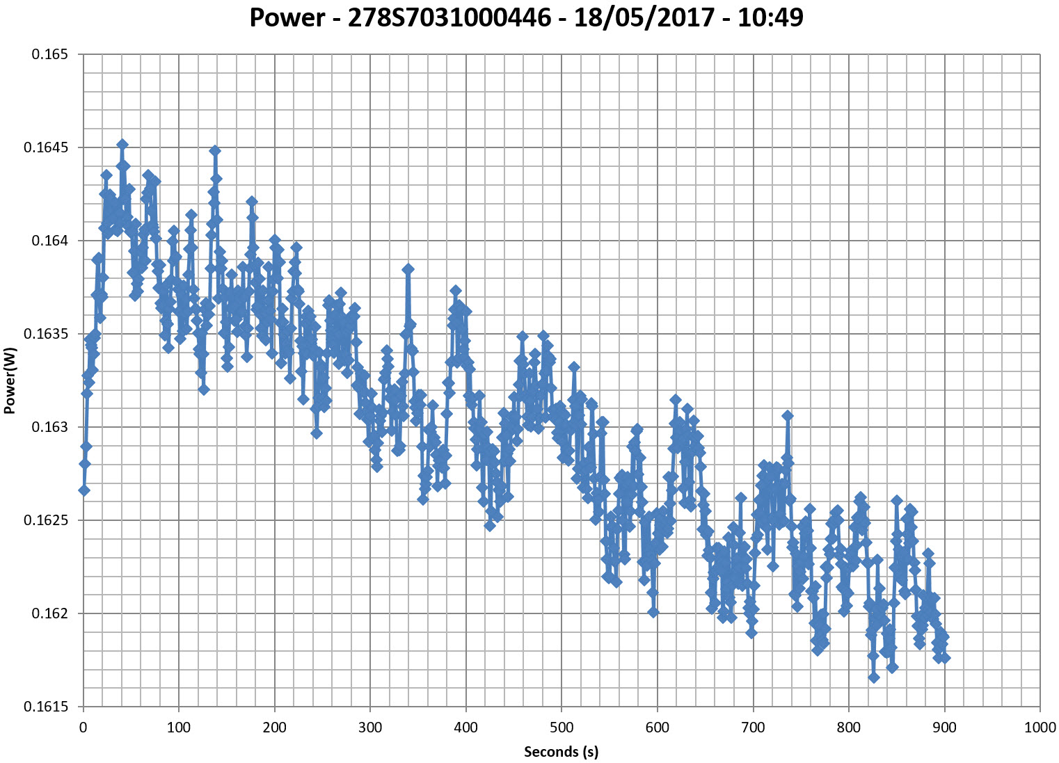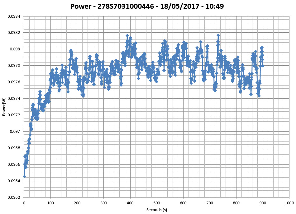 This graph is generated by the PPA Standby Power Analysis software which takes full control of the power analyzer during the whole procedure. This application features all of the EN50564 & IEC62301 test limits for standby power software testing.