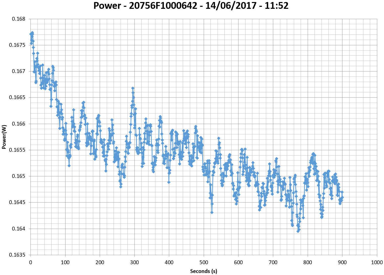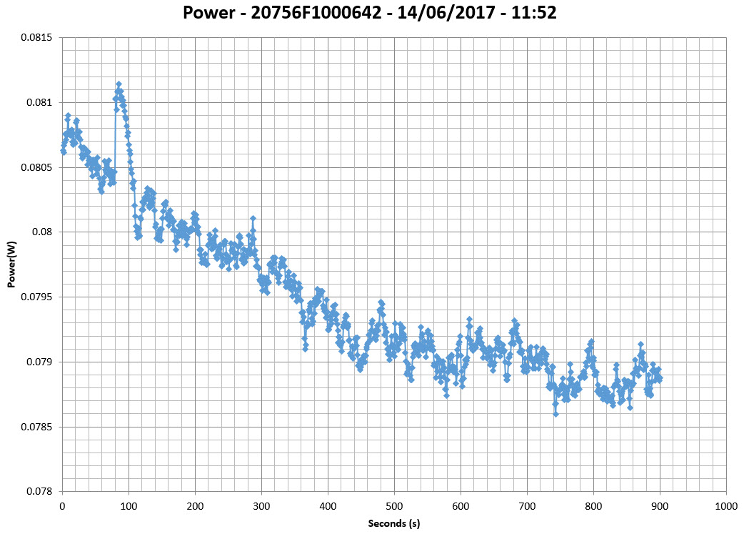 This graph is generated by the PPA Standby Power Analysis software which takes full control of the power analyzer during the whole procedure. This application features all of the EN50564 & IEC62301 test limits for standby power software testing.