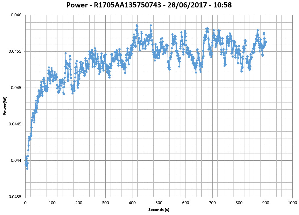 This graph is generated by the PPA Standby Power Analysis software which takes full control of the power analyzer during the whole procedure. This application features all of the EN50564 & IEC62301 test limits for standby power software testing.