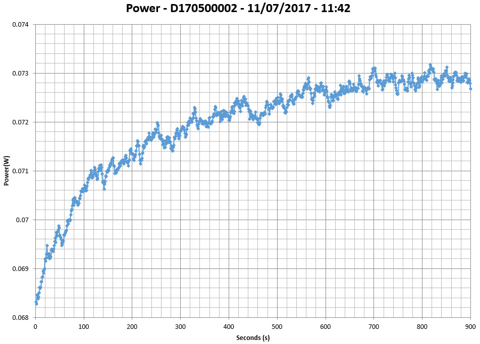 This graph is generated by the PPA Standby Power Analysis software which takes full control of the power analyzer during the whole procedure. This application features all of the EN50564 & IEC62301 test limits for standby power software testing.
