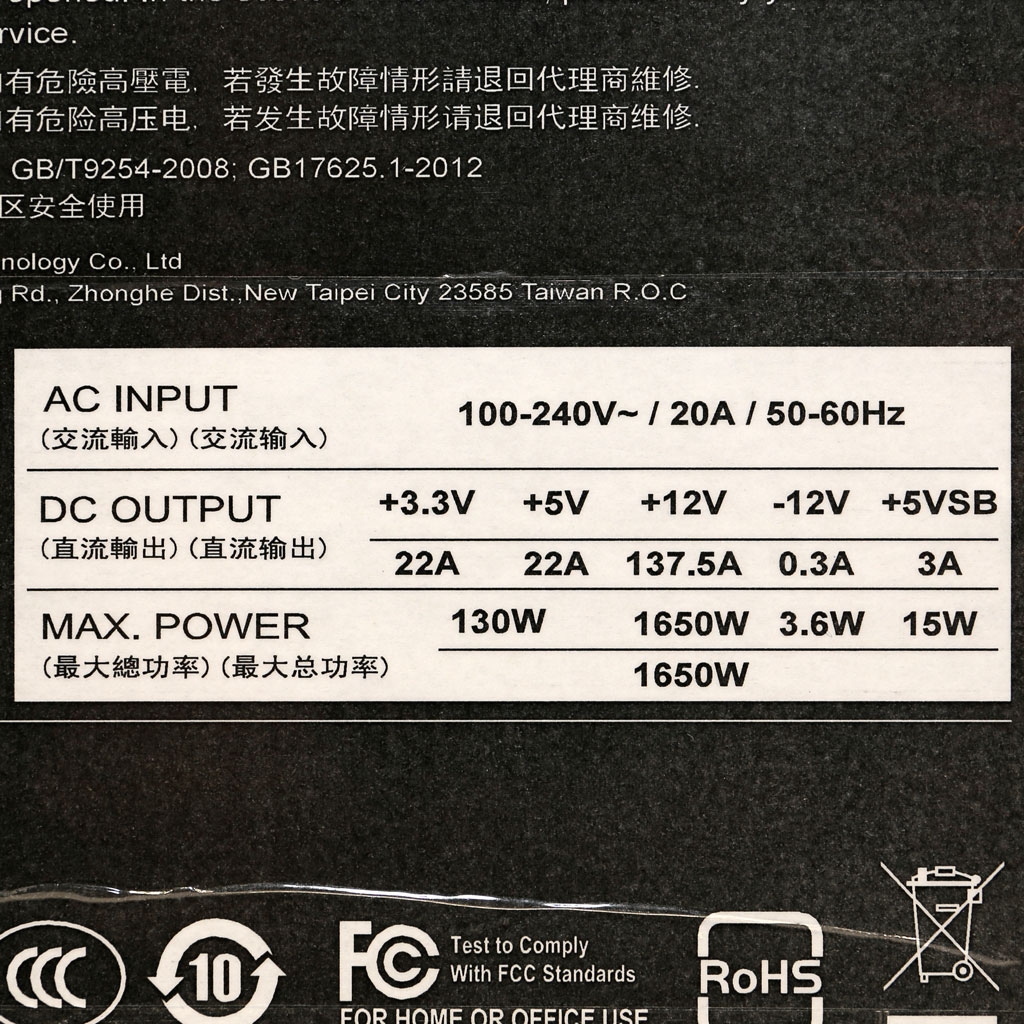 | Hold-up Cap(s) | 2x Rubycon (400V, 820uF, 3,000h @ 105°C, MXK) |