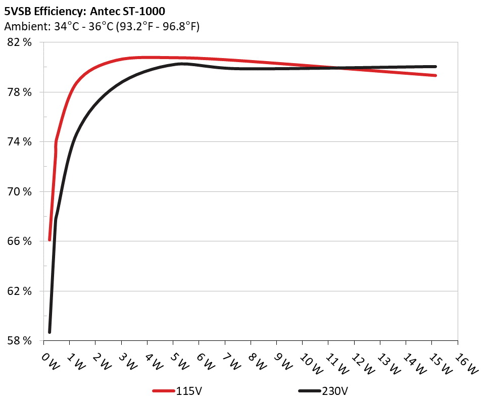 This graph depicts the efficiency levels of the 5VSB rail with 115V and 230V input