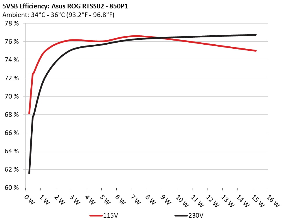 This graph depicts the efficiency levels of the 5VSB rail with 115V and 230V input