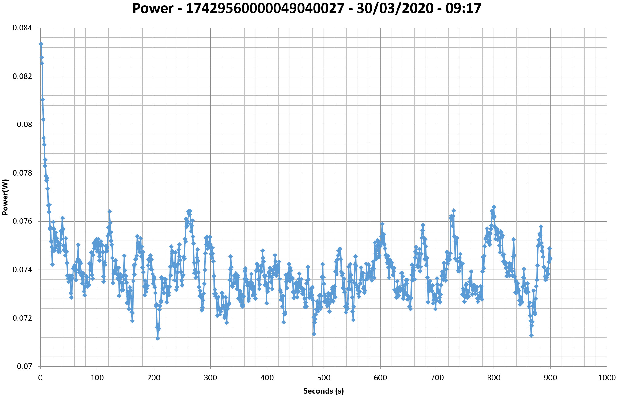 This graph is generated by the PPA Standby Power Analysis software which takes full control of the power analyzer during the whole procedure. This application features all of the EN50564 & IEC62301 test limits for standby power software testing