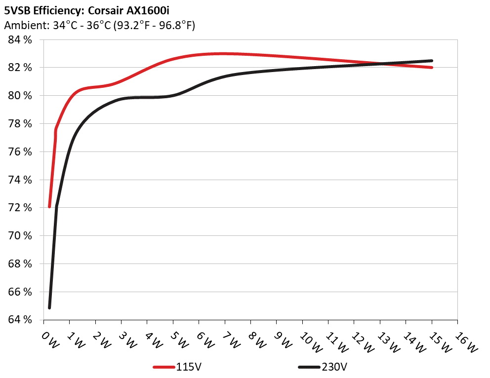 This graph depicts the efficiency levels of the 5VSB rail with 115V and 230V input