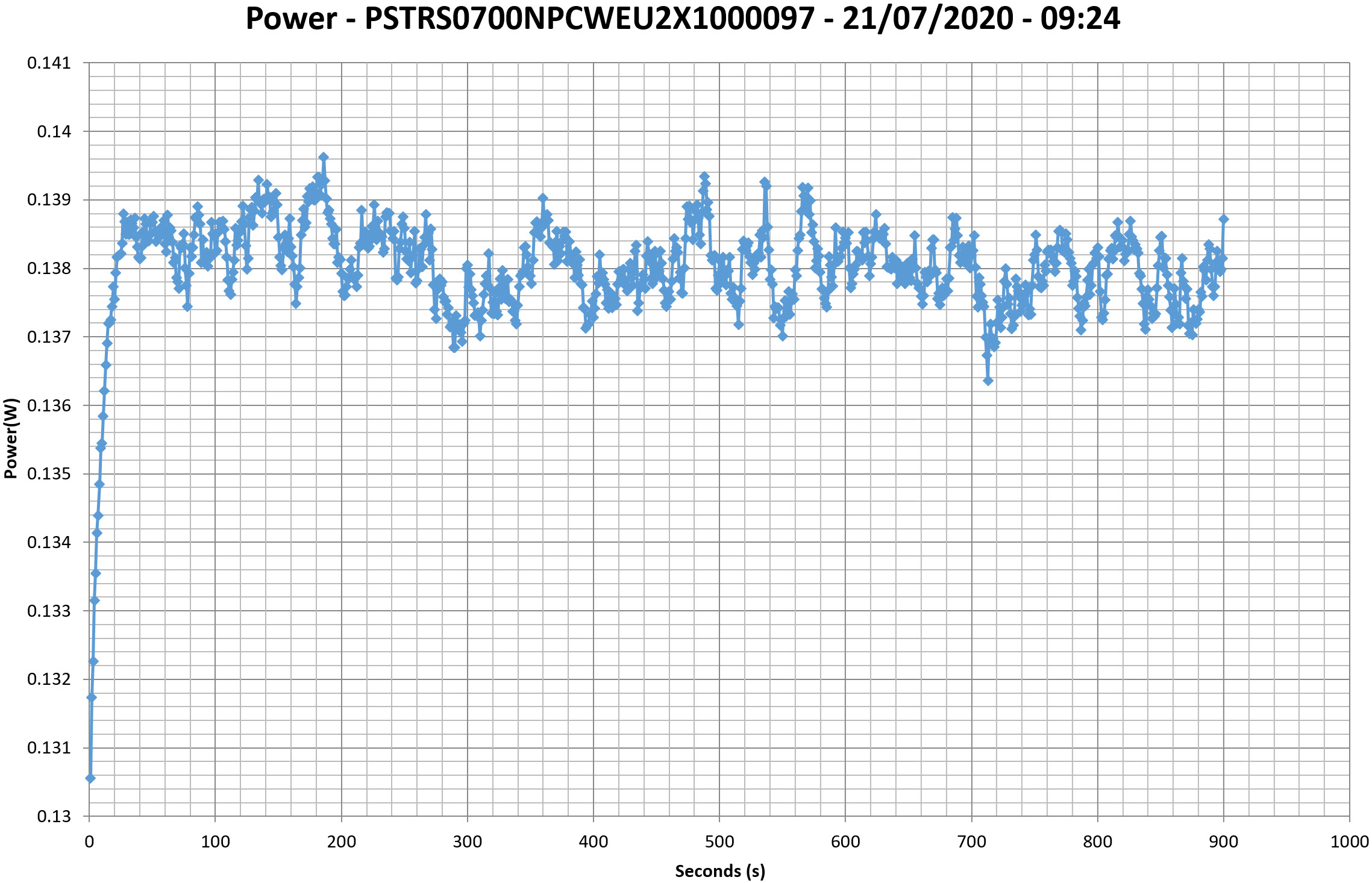 This graph is generated by the PPA Standby Power Analysis software which takes full control of the power analyzer during the whole procedure. This application features all of the EN50564 & IEC62301 test limits for standby power software testing