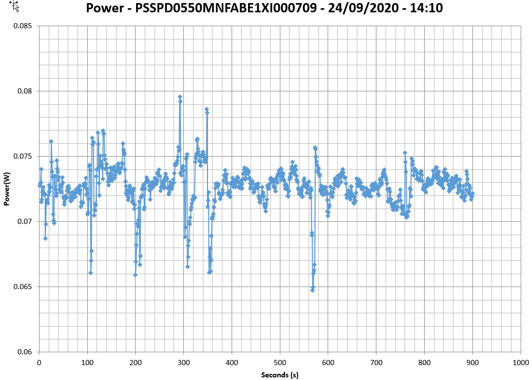 This graph is generated by the PPA Standby Power Analysis software which takes full control of the power analyzer during the whole procedure. This application features all of the EN50564 & IEC62301 test limits for standby power software testing