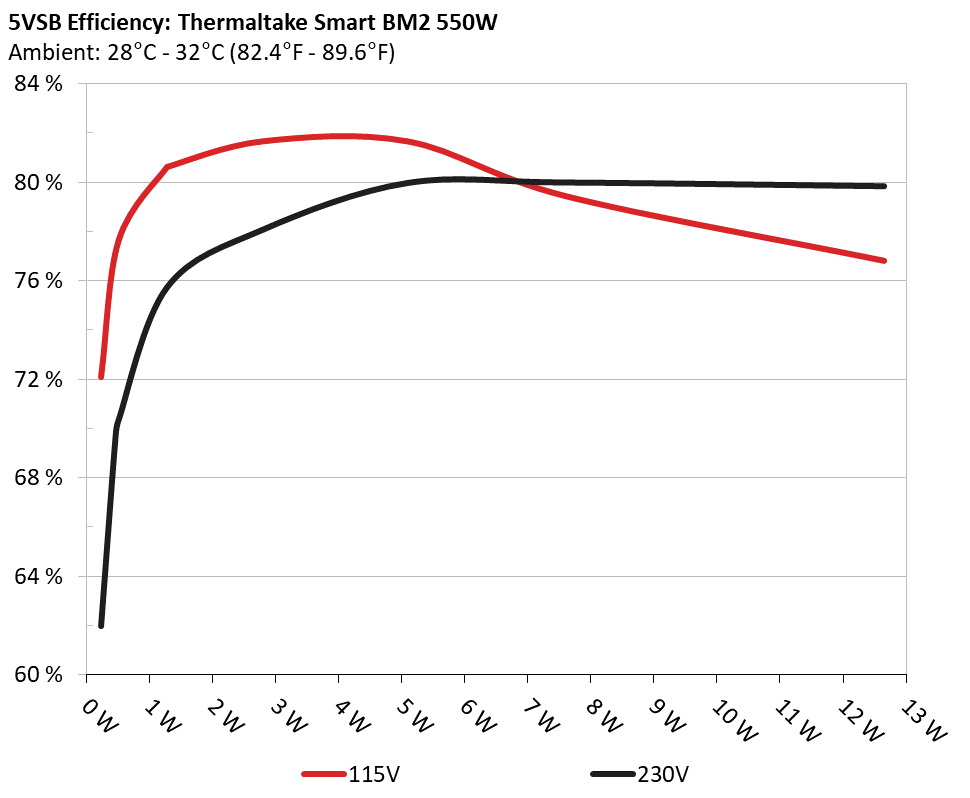 This graph depicts the efficiency levels of the 5VSB rail with 115V and 230V input