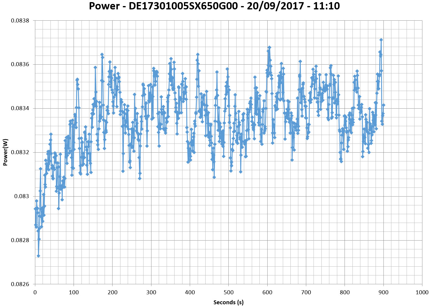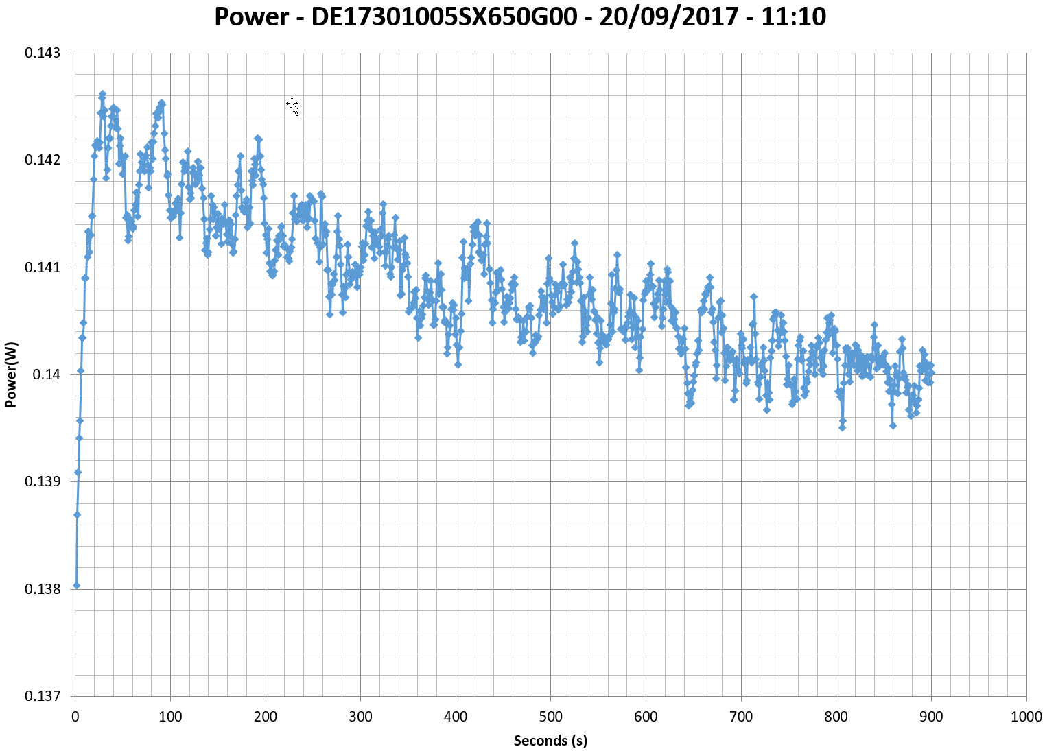 This graph is generated by the PPA Standby Power Analysis software which takes full control of the power analyzer during the whole procedure. This application features all of the EN50564 & IEC62301 test limits for standby power software testing.