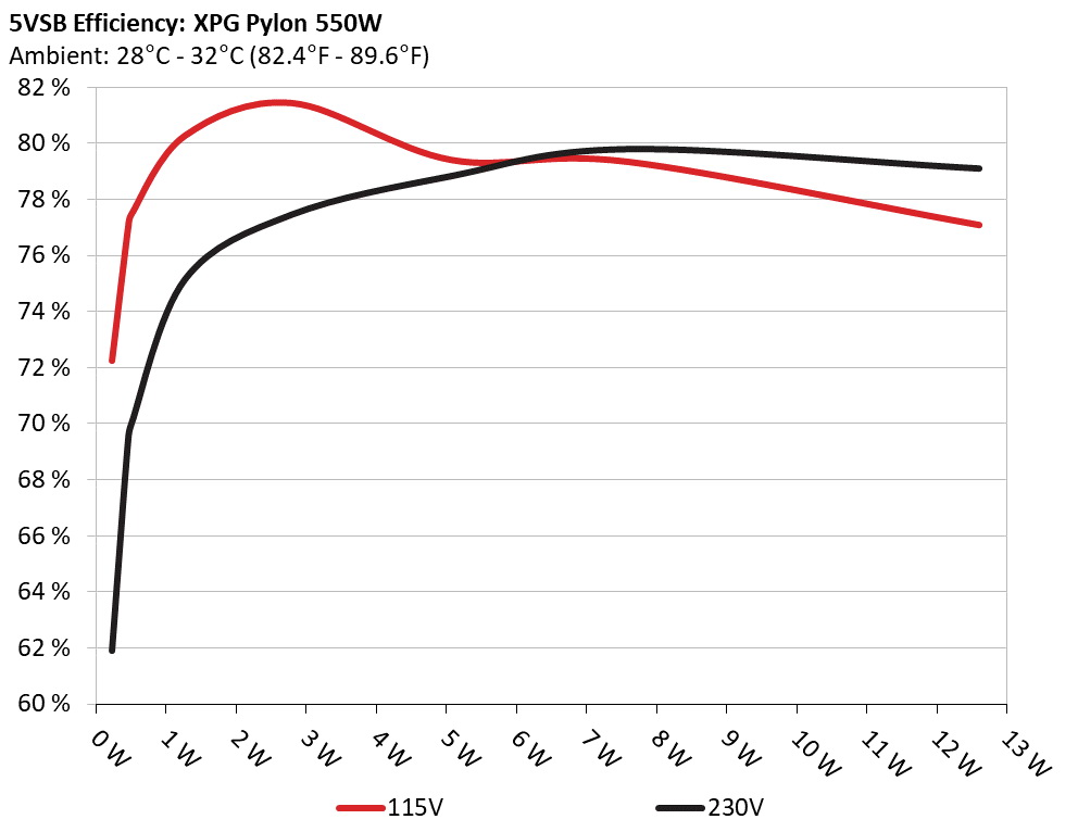 This graph depicts the efficiency levels of the 5VSB rail with 115V and 230V input