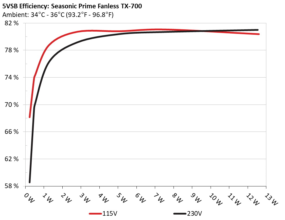 This graph depicts the efficiency levels of the 5VSB rail with 115V and 230V input