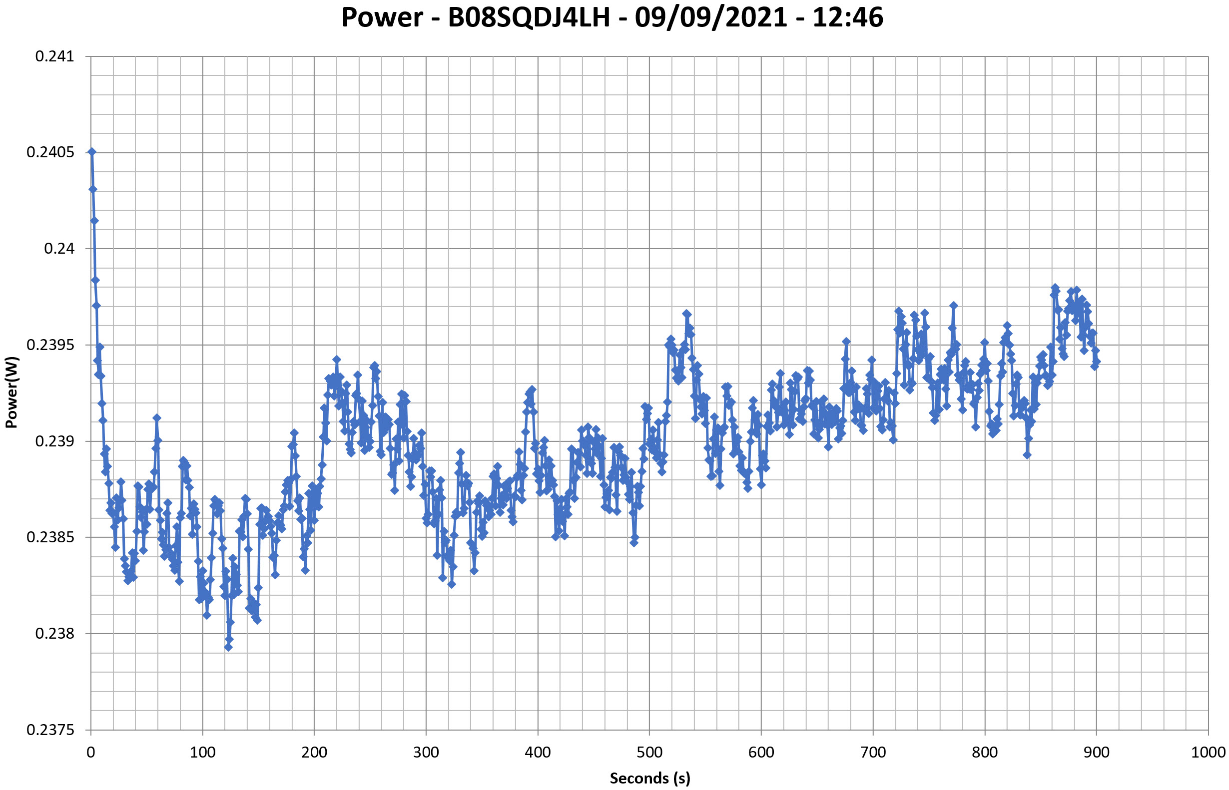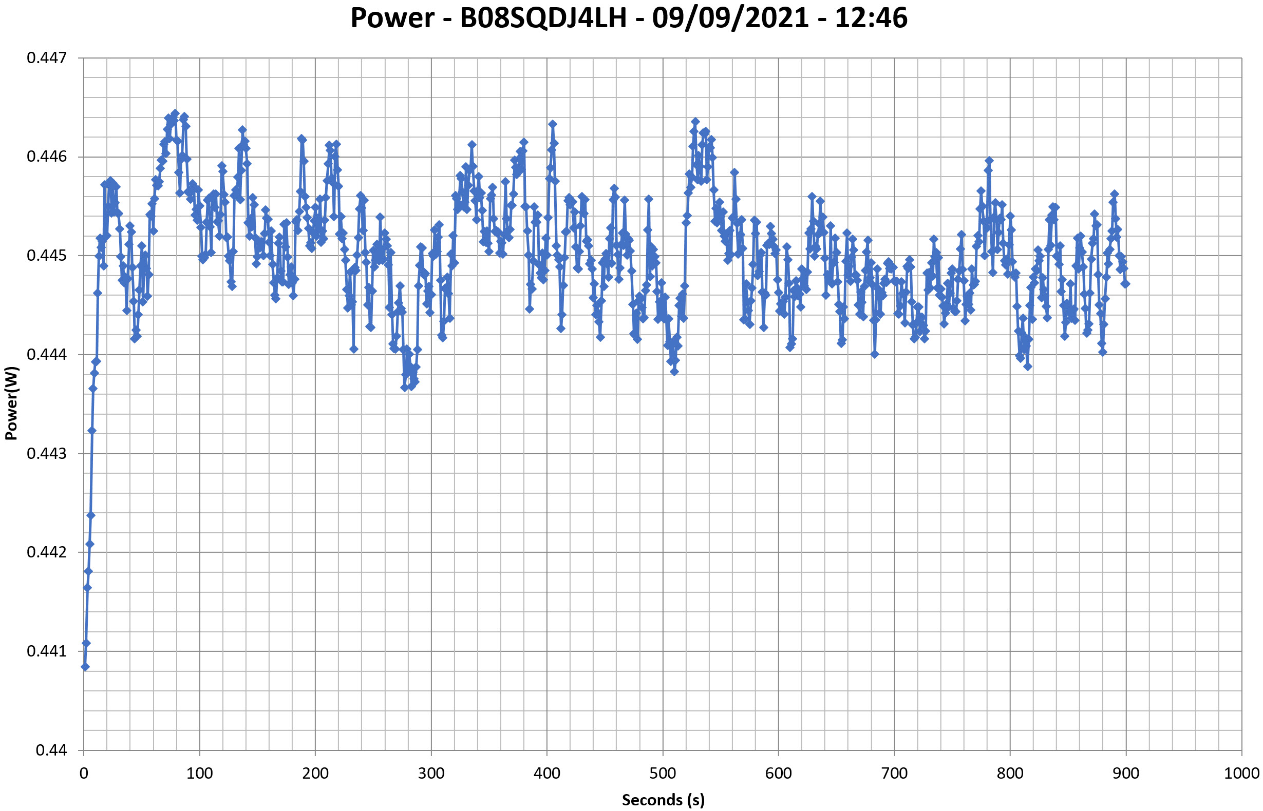 This graph is generated by the PPA Standby Power Analysis software which takes full control of the power analyzer during the whole procedure. This application features all of the EN50564 & IEC62301 test limits for standby power software testing