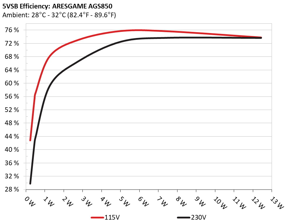 This graph depicts the efficiency levels of the 5VSB rail with 115V and 230V input