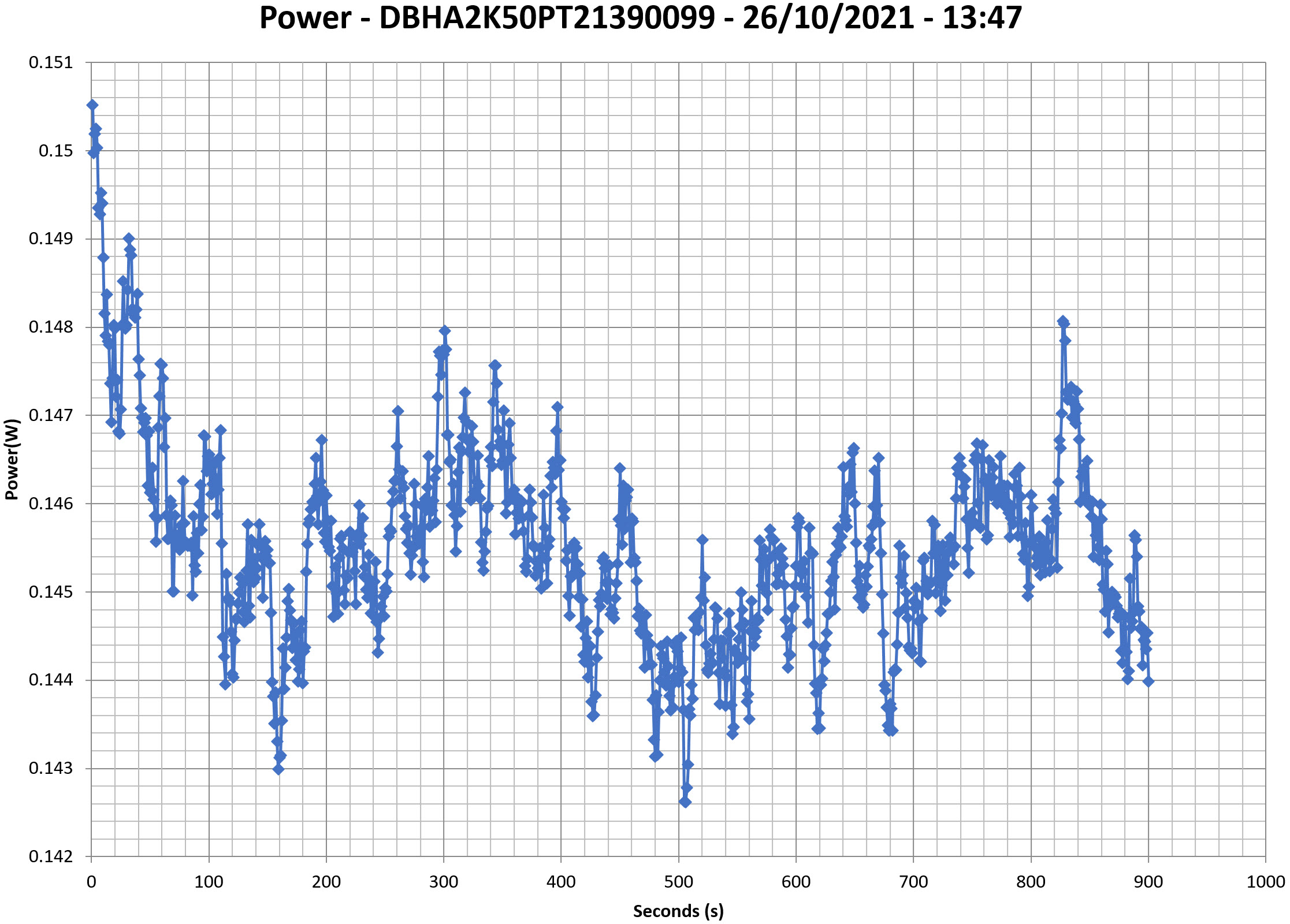 This graph is generated by the PPA Standby Power Analysis software which takes full control of the power analyzer during the whole procedure. This application features all of the EN50564 & IEC62301 test limits for standby power software testing