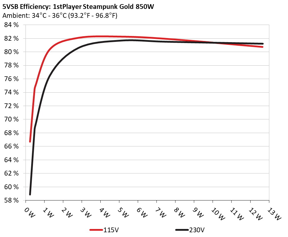 This graph depicts the efficiency levels of the 5VSB rail with 115V and 230V input