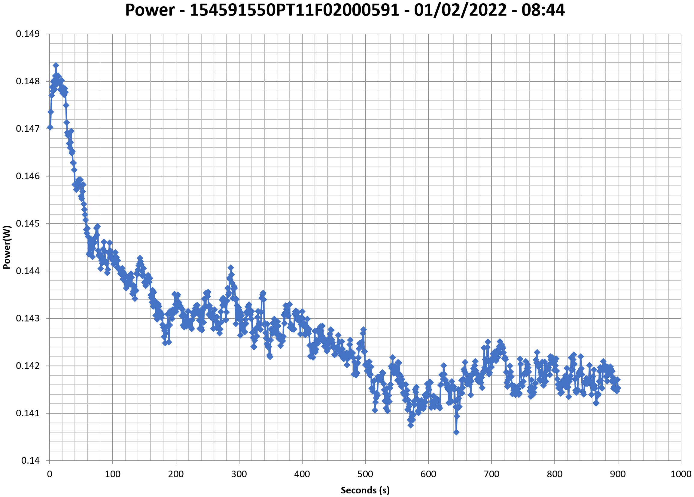 This graph is generated by the PPA Standby Power Analysis software which takes full control of the power analyzer during the whole procedure. This application features all of the EN50564 & IEC62301 test limits for standby power software testing