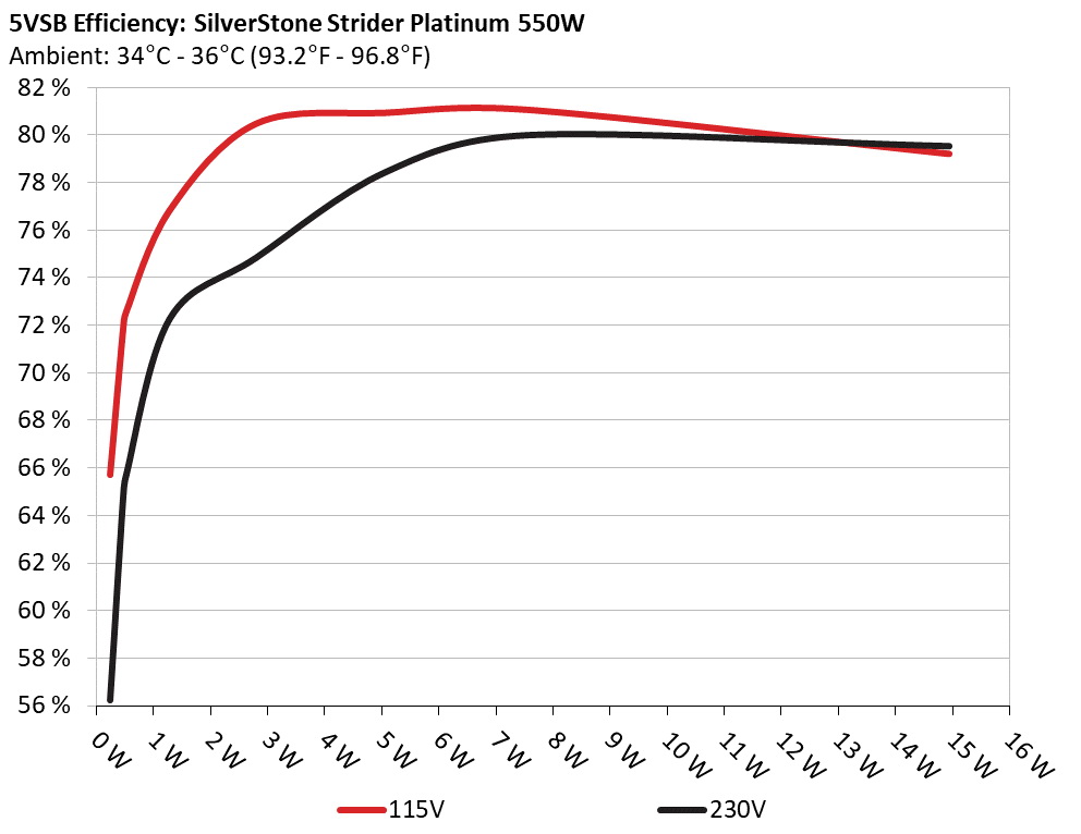 This graph depicts the efficiency levels of the 5VSB rail with 115V and 230V input