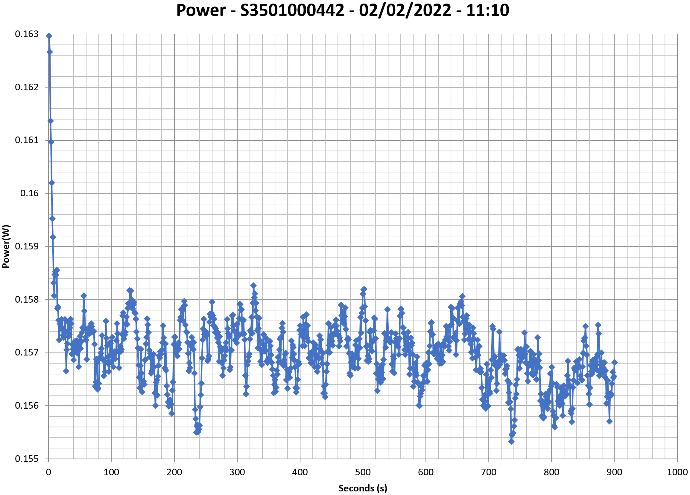 This graph is generated by the PPA Standby Power Analysis software which takes full control of the power analyzer during the whole procedure. This application features all of the EN50564 & IEC62301 test limits for standby power software testing