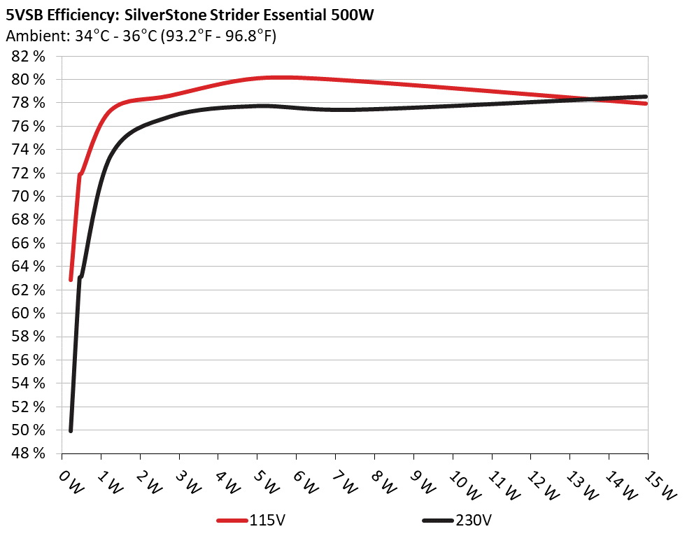 This graph depicts the efficiency levels of the 5VSB rail with 115V and 230V input