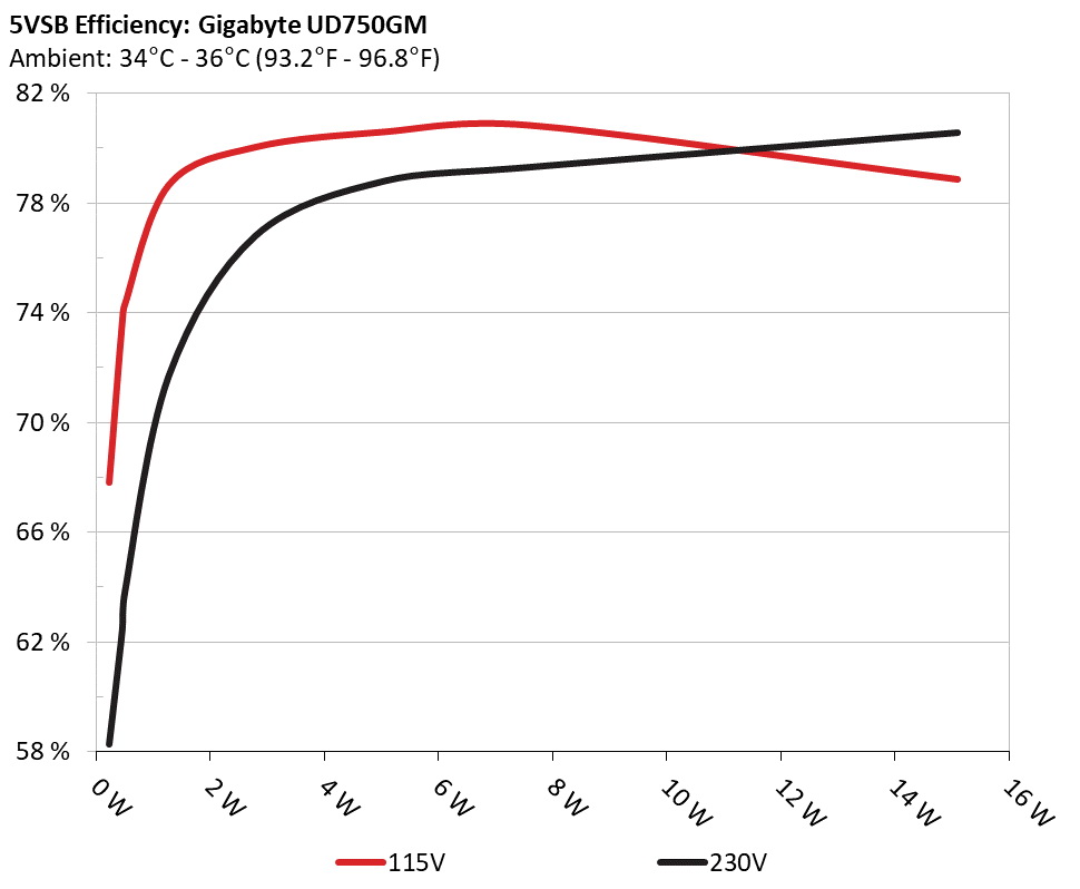 This graph depicts the efficiency levels of the 5VSB rail with 115V and 230V input