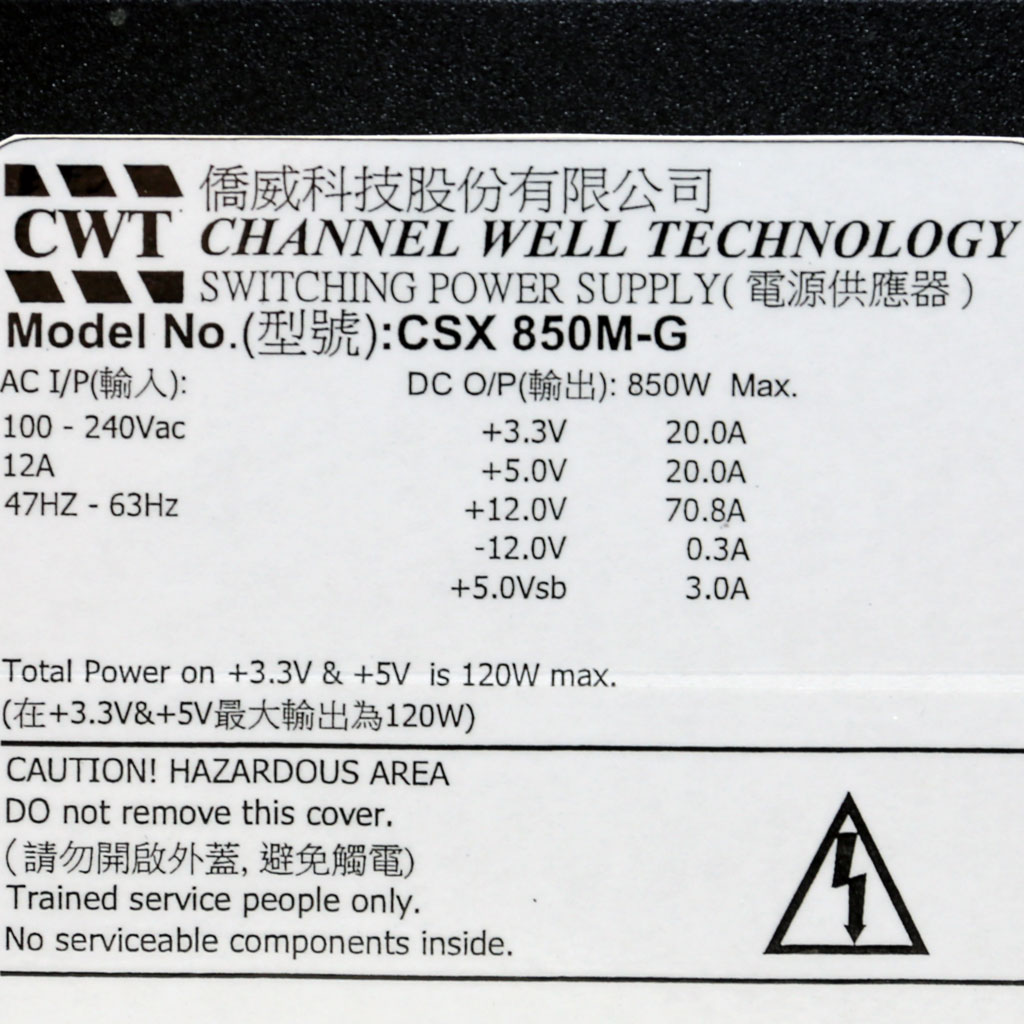 | Filtering Capacitors | Electrolytic: 2x Elite (2-5,000h @ 105°C, ED), 1x Chengx(2-4,000h @ 105°C, GR), 2x Chengx (3-6,000h @ 105°C, LF) Polymer: 7x APAQ, 9x CapXon, 5x no info |