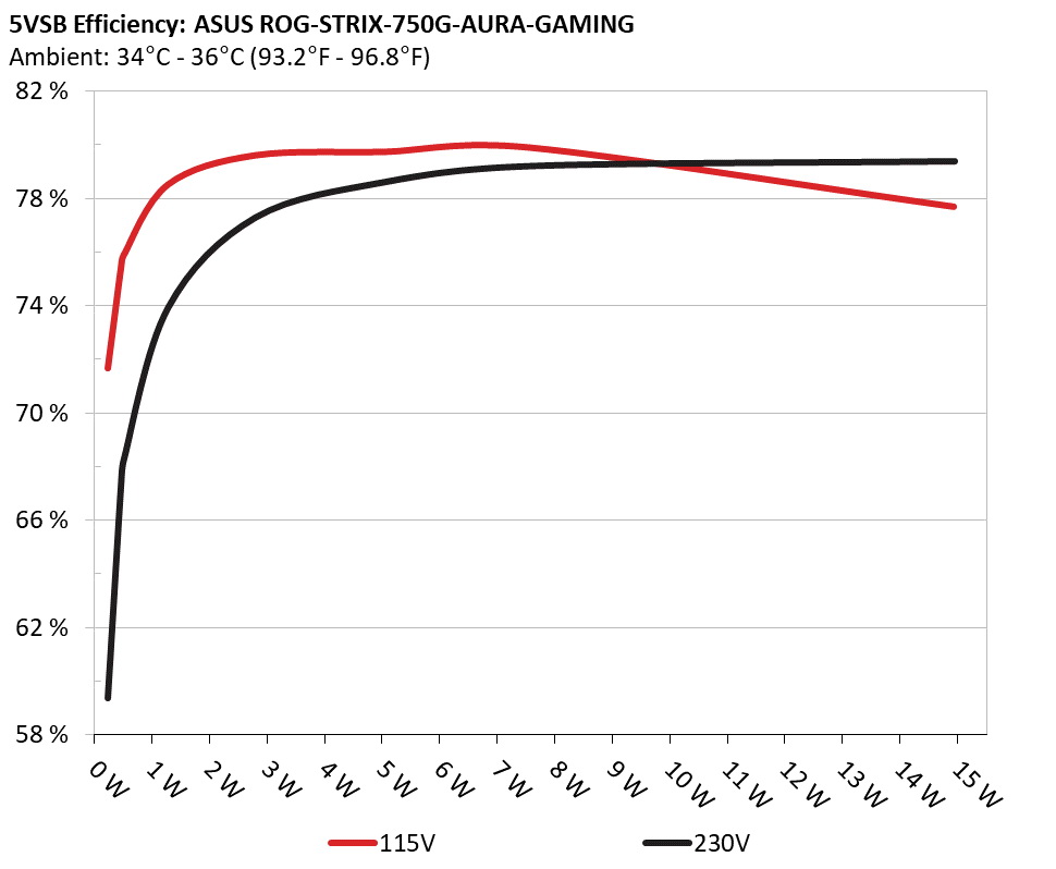 This graph depicts the efficiency levels of the 5VSB rail with 115V and 230V input