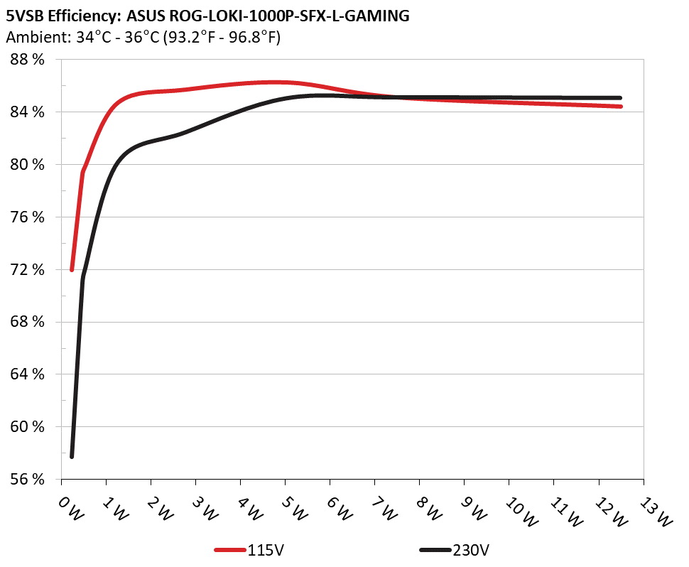 This graph depicts the efficiency levels of the 5VSB rail with 115V and 230V input