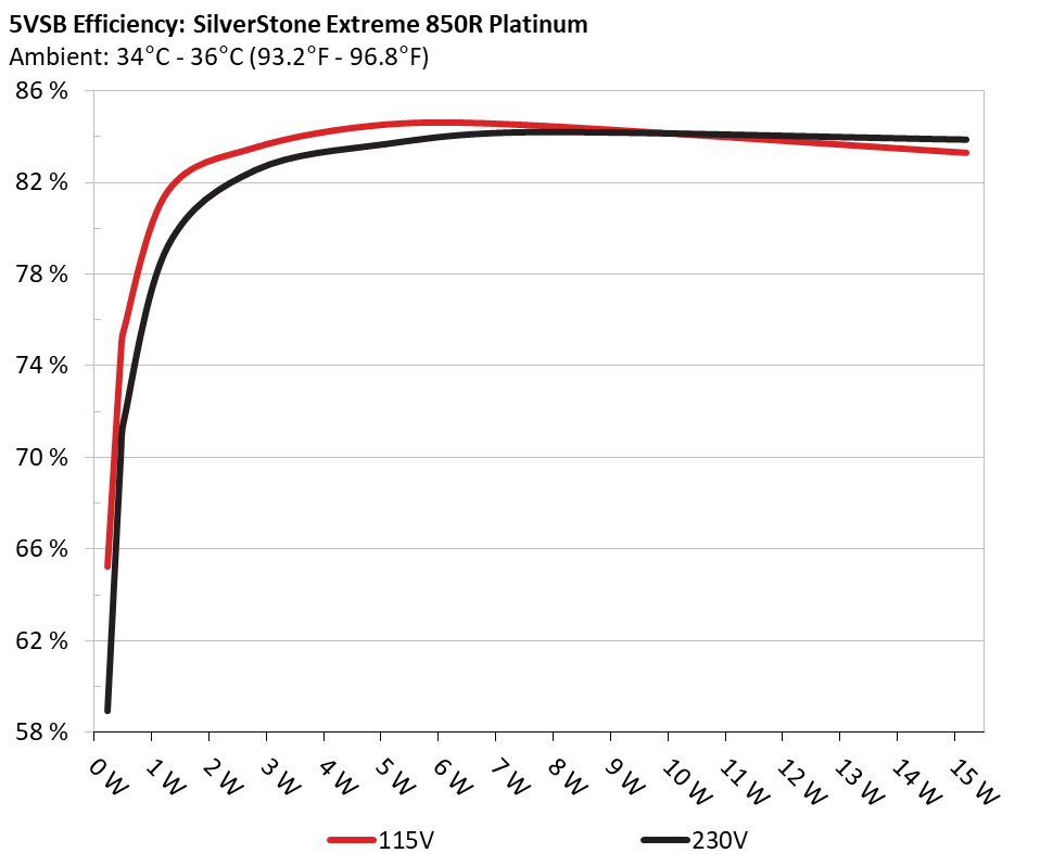 This graph depicts the efficiency levels of the 5VSB rail with 115V and 230V input