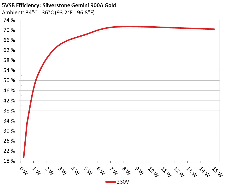 This graph depicts the efficiency levels of the 5VSB rail with 115V and 230V input