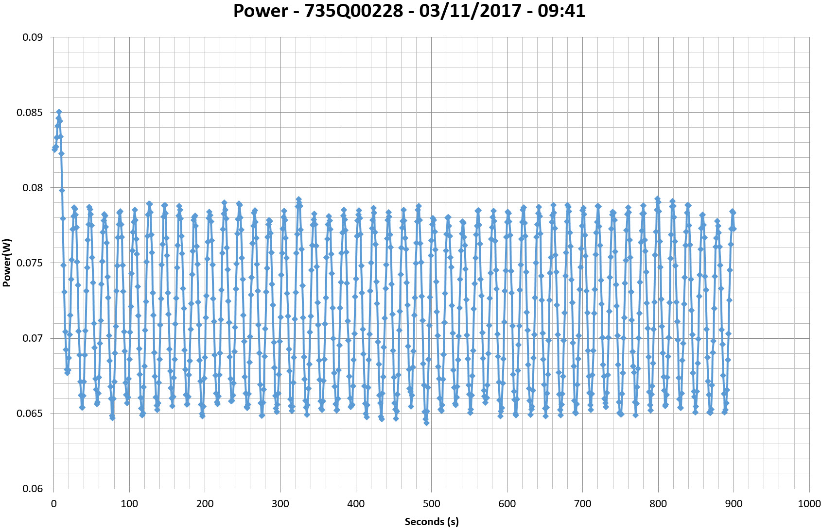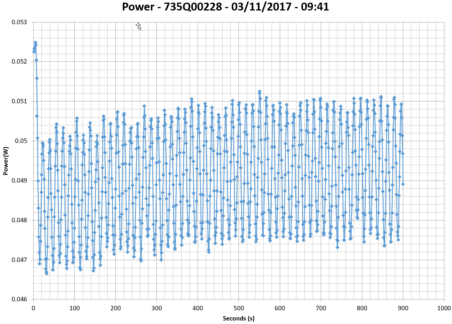 This graph is generated by the PPA Standby Power Analysis software which takes full control of the power analyzer during the whole procedure. This application features all of the EN50564 & IEC62301 test limits for standby power software testing.