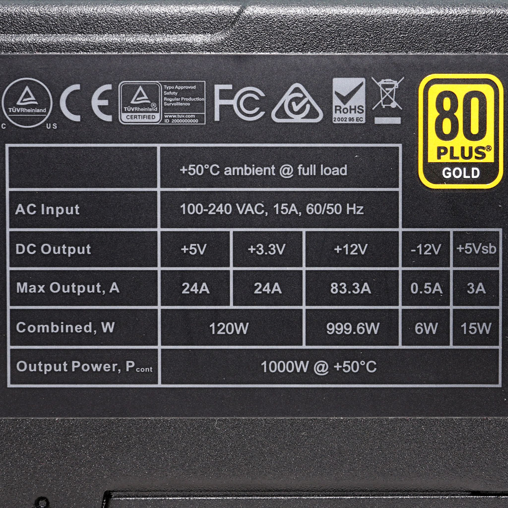 | Hold-up Cap(s) | 1x Nichicon (400V, 390uF, 2000h @ 105 °C, GG) |