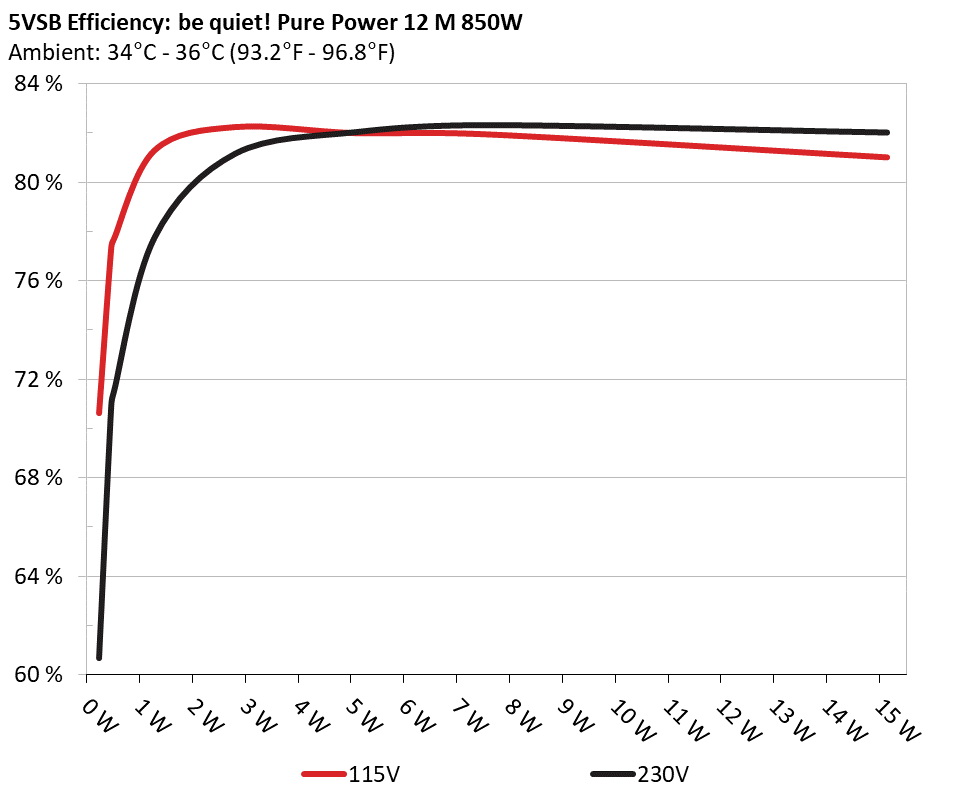 This graph depicts the efficiency levels of the 5VSB rail with 115V and 230V input