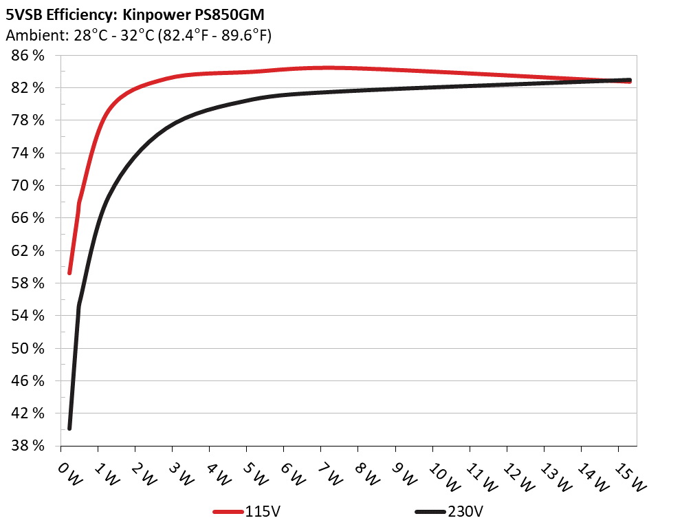 This graph depicts the efficiency levels of the 5VSB rail with 115V and 230V input