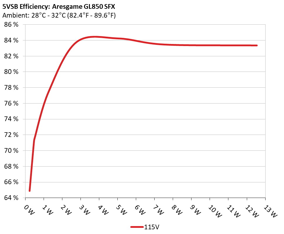 This graph depicts the efficiency levels of the 5VSB rail with 115V and 230V input