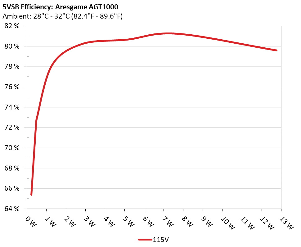 This graph depicts the efficiency levels of the 5VSB rail with 115V and 230V input