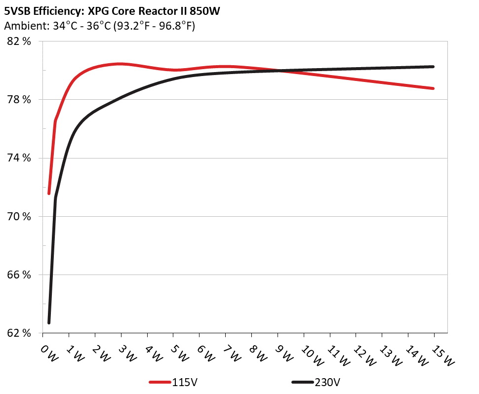 This graph depicts the efficiency levels of the 5VSB rail with 115V and 230V input
