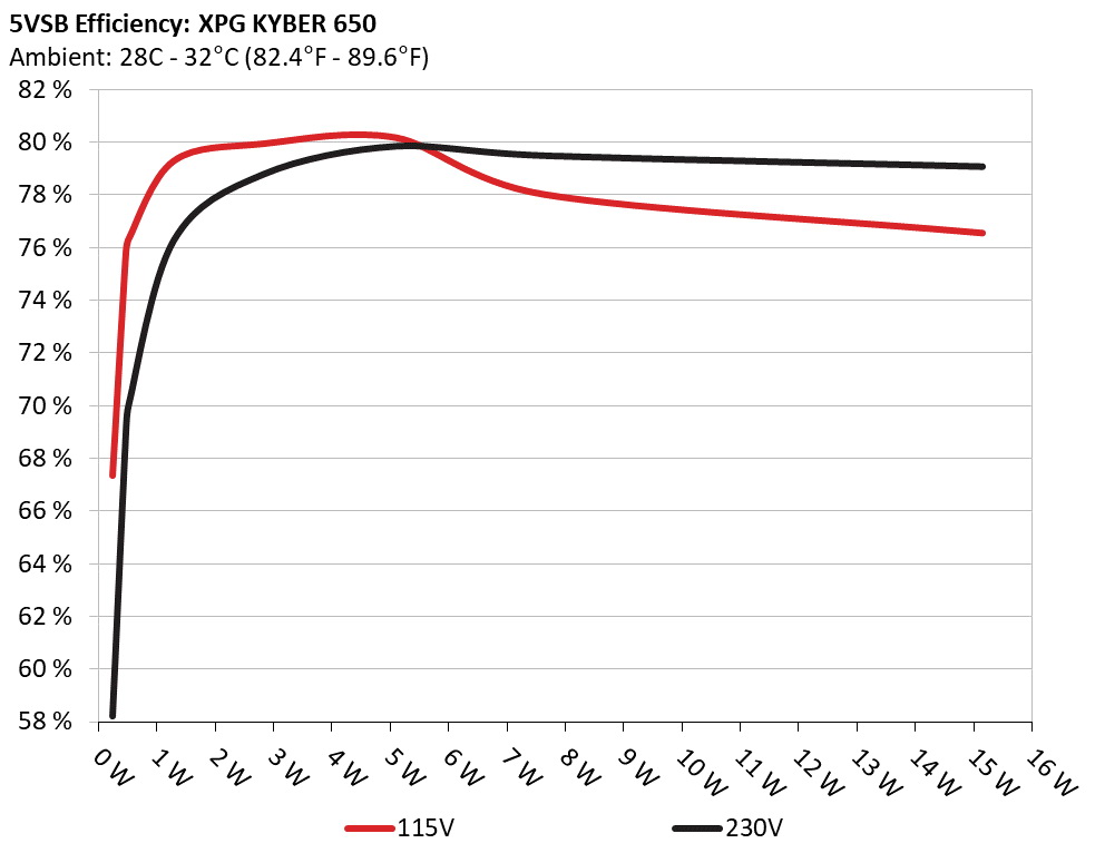 This graph depicts the efficiency levels of the 5VSB rail with 115V and 230V input