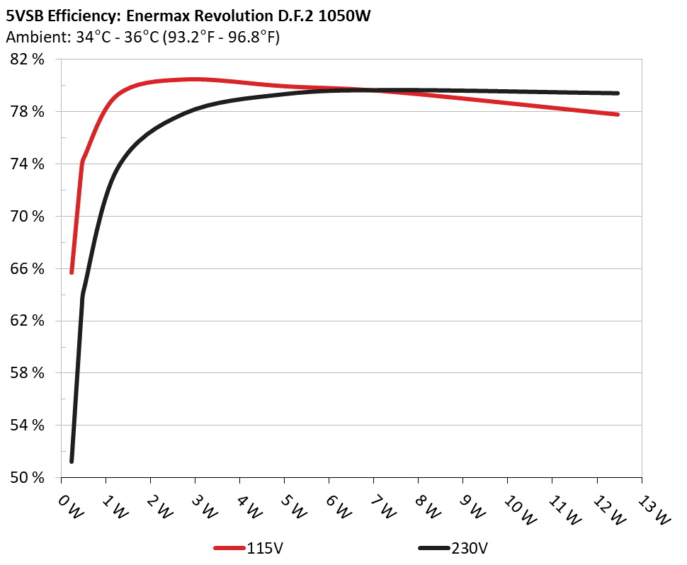 This graph depicts the efficiency levels of the 5VSB rail with 115V and 230V input