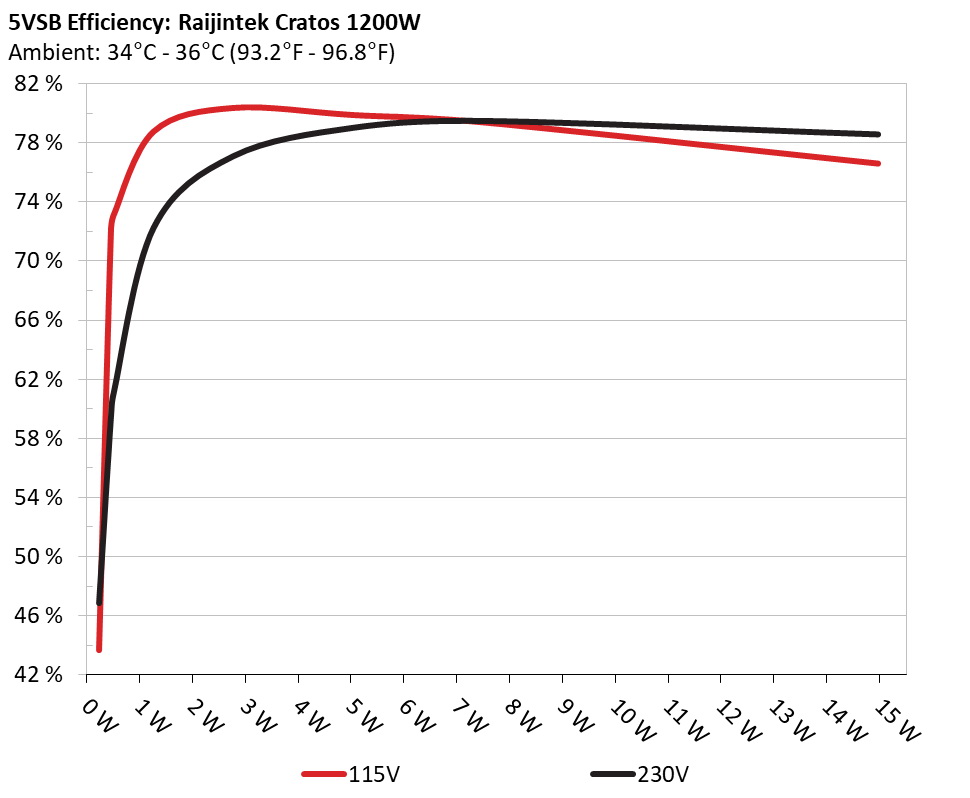 This graph depicts the efficiency levels of the 5VSB rail with 115V and 230V input