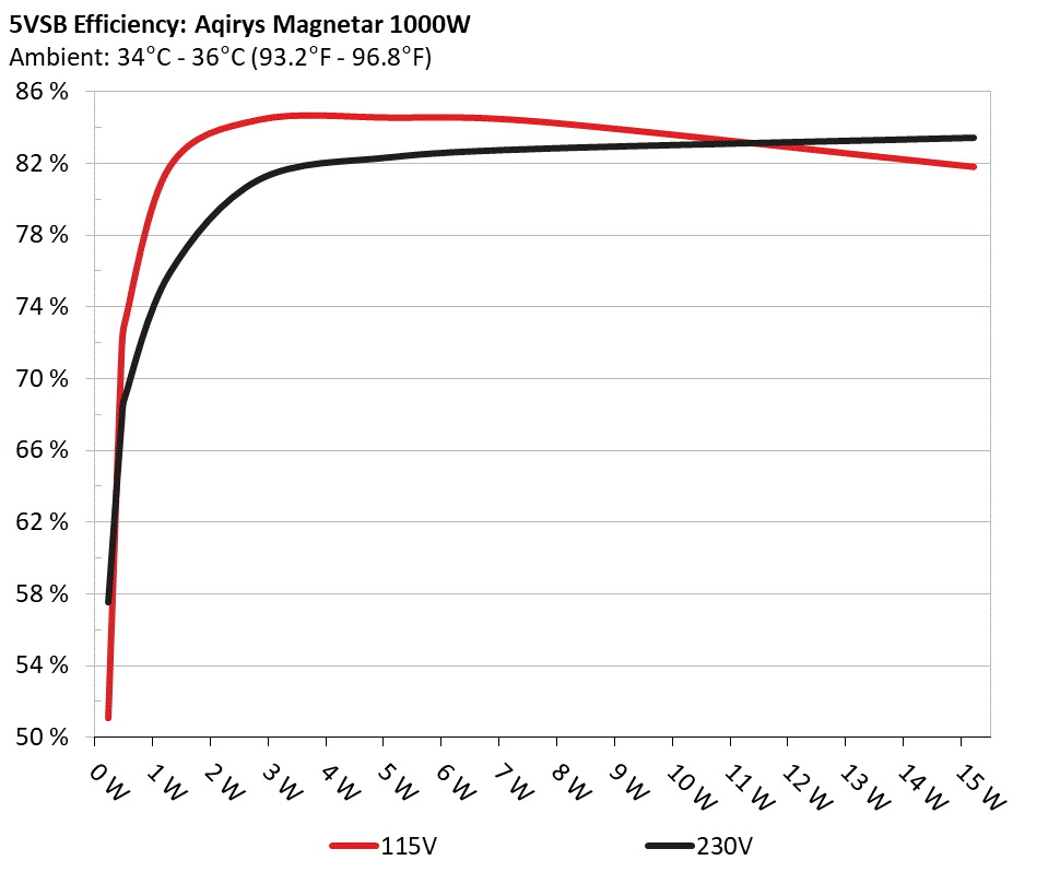 This graph depicts the efficiency levels of the 5VSB rail with 115V and 230V input