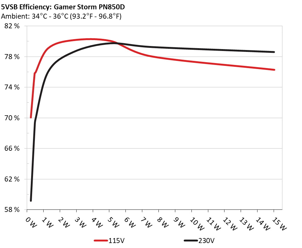 This graph depicts the efficiency levels of the 5VSB rail with 115V and 230V input